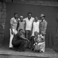 272. EAP054/1/80/272 Reference (shelfmark): EAP054/1/80/272 Title: Recreational photograph [c 1970-c 1995] Scope & Content: Group of seven people, young men and women Format of original: 59mm x 59mm plastic negative Collection Area: Endangered Archives Programme Languages: Not applicable Date Range: c 1970-c 1995 Extent: 1 TIFF image