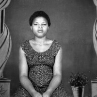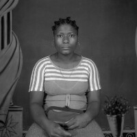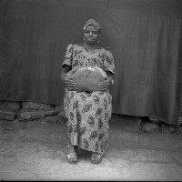 110. EAP054/1/86/110 Reference (shelfmark): EAP054/1/86/110 Title: Recreational photograph [c 1982] Scope & Content: Woman standing in flowered "pagne" skirt and white top. Format of original: 59mm x 59mm plastic negative Collection Area: Endangered Archives Programme Languages: Not applicable Date Range: 31 Aug 2007 Extent: 1 TIFF image