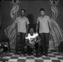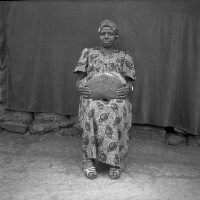 112. EAP054/1/86/112 Reference (shelfmark): EAP054/1/86/112 Title: Recreational photograph [c 1982] Scope & Content: 2 co-wives standing in atching "pagne" dresses. Format of original: 59mm x 59mm plastic negative Collection Area: Endangered Archives Programme Languages: Not applicable Date Range: 31 Aug 2007 Extent: 1 TIFF image