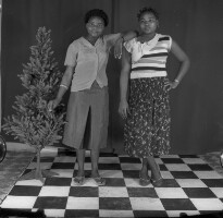 92. EAP054/1/97/92 Reference (shelfmark): EAP054/1/97/92 Title: Recreational photograph [c 1984] Scope & Content: 2 women standing by a plastic tree Format of original: 58mm x 59mm plastic negative Collection Area: Endangered Archives Programme Languages: Not applicable Date Range: c 1984 Extent: 1 TIFF image