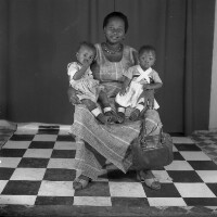 114. EAP054/1/97/114 Reference (shelfmark): EAP054/1/97/114 Title: Recreational photograph [c 1984] Scope & Content: Woman from Batcham sitting holding twin babies Format of original: 59mm x 59mm plastic negative Collection Area: Endangered Archives Programme Languages: Not applicable Date Range: c 1984 Extent: 1 TIFF image