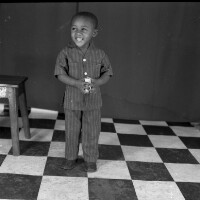 118. EAP054/1/97/118 Reference (shelfmark): EAP054/1/97/118 Title: Recreational photograph [c 1984] Scope & Content: Small boy standing smiling Format of original: 59mm x 59mm plastic negative Collection Area: Endangered Archives Programme Languages: Not applicable Date Range: c 1984 Extent: 1 TIFF image