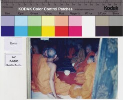 Most Lao people popular make the worship altar in the house.these worship objects and they in worshipping ceremony particularly in special day as: Day of festing darkmoon,fullmoon,or anniversary day.This photo was taken in 2002. Original material consists of: chromogenic print