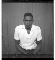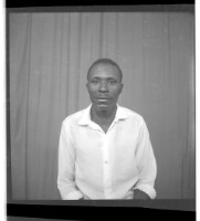 - A man wearing a dress shirt sitting facing forward in the studio.