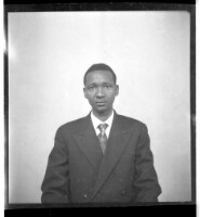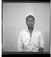 - A man wearing a dress shirt sitting facing forward in the studio.