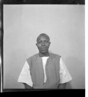 - A man wearing a military uniform and hat sitting facing forward in the studio.