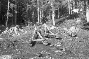 Timber-sled - unknown area; 1948-1952; taken by V. Marinov; Black-and-white negative with good quality, dirty; 24x36 mm; Inventory in Bulgarian language