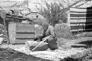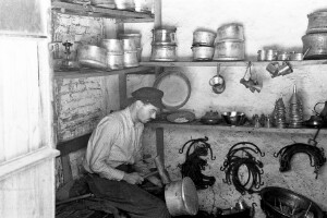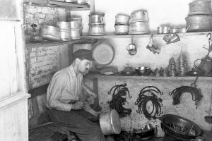 Coppersmith in his workshop; town of Devin; 1948-1952; taken by N. Nikolov; Black-and-white negative with good quality, dirty; 24x36 mm; Inventory in Bulgarian language