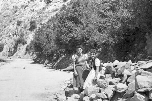 Women on a road; Place Zabral outside the town of Devin; 1948-1952; taken by N. Nikolov; Black-and-white negative with good quality, dirty; 24x36 mm; Inventory in Bulgarian language