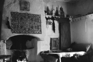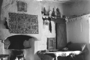 Interior of a room in a peasant house; village of Shiroka Luka, district of Smolyan; 1948-1952; taken by N. Nikolov; Black-and-white negative with good quality, dirty; 24x36 mm; Inventory in Bulgarian language
