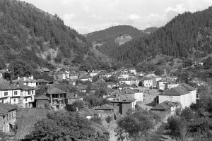 Panoramic view of a village; village of Shiroka Luka, district of Smolyan; 1948-1952; taken by N. Nikolov; Black-and-white negative with good quality, dirty; 24x36 mm; Inventory in Bulgarian language