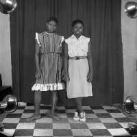 2 young women, one sitting, feet crossed, left hand on her lap, the other standing, in a hat, left arm around the shoulders of the first. Format of original: 59mm x 59mm plastic negative