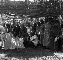 107. EAP054/1/155/102 Reference (shelfmark): EAP054/1/155/102 Title: Recreational photograph [c 1980] Scope & Content: Group of men under shelter Format of original: 59mm x 59mm plastic negative Collection Area: Endangered Archives Programme Languages: Not applicable Date Range: c 1980 Extent: 1 TIFF image