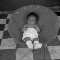 104. EAP054/1/167/214 Reference (shelfmark): EAP054/1/167/214 Title: Recreational photograph [c 1983] Scope & Content: Baby from Mbouda, lying in an armchair, in white. Format of original: 59mm x 59mm plastic negative Collection Area: Endangered Archives Programme Languages: Not applicable Date Range: c 1983 Extent: 1 TIFF image