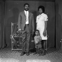 116. EAP054/1/155/135 Reference (shelfmark): EAP054/1/155/135 Title: Recreational photograph [c 1980] Scope & Content: Couple standing with baby Format of original: 59mm x 59mm plastic negative Collection Area: Endangered Archives Programme Languages: Not applicable Date Range: c 1980 Extent: 1 TIFF image