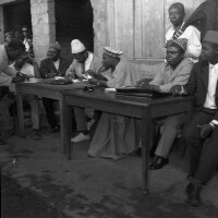 119. EAP054/1/155/144 Reference (shelfmark): EAP054/1/155/144 Title: Recreational photograph [c 1980] Scope & Content: Officials behind table Format of original: 59mm x 59mm plastic negative Collection Area: Endangered Archives Programme Languages: Not applicable Date Range: c 1980 Extent: 1 TIFF image