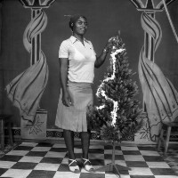 113. EAP054/1/156/149 Reference (shelfmark): EAP054/1/156/149 Title: Recreational photograph [c 1981] Scope & Content: Girl standing in skirt, left hand on decorated plastic tree beside her. Format of original: 59mm x 59mm plastic negative Collection Area: Endangered Archives Programme Languages: Not applicable Date Range: c 1981 Extent: 1 TIFF image