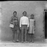 126. EAP054/1/81/300 Reference (shelfmark): EAP054/1/81/300 Title: Recreational photograph [c 1977] Scope & Content: Man standing between 2 women standing Format of original: 59mm x 59mm plastic negative Collection Area: Endangered Archives Programme Languages: Not applicable Date Range: c 1977 Extent: 1 TIFF image