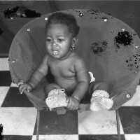 121. EAP054/1/105/11 Reference (shelfmark): EAP054/1/105/11 Title: Recreational photograph [c 1987] Scope & Content: Baby in an armchair, white packet in right hand.. Format of original: 59mm x 59mm plastic negative Collection Area: Endangered Archives Programme Languages: Not applicable Date Range: c 1987 Extent: 1 TIFF image