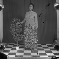 124. EAP054/1/105/40 Reference (shelfmark): EAP054/1/105/40 Title: Recreational photograph [c 1987] Scope & Content: Woman standing, right hand on plastic tree to her right. Format of original: 59mm x 59mm plastic negative Collection Area: Endangered Archives Programme Languages: Not applicable Date Range: c 1987 Extent: 1 TIFF image