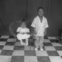 126. EAP054/1/105/57 Reference (shelfmark): EAP054/1/105/57 Title: Recreational photograph [c 1987] Scope & Content: 2 children, 1 standing, 1 on armchair. Format of original: 59mm x 59mm plastic negative Collection Area: Endangered Archives Programme Languages: Not applicable Date Range: c 1987 Extent: 1 TIFF image