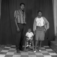 130. EAP054/1/105/72 Reference (shelfmark): EAP054/1/105/72 Title: Recreational photograph [c 1987] Scope & Content: Group of 3 people, Man and woman standing, child sitting between them, woman's left hand on hip. Format of original: 59mm x 59mm plastic negative Collection Area: Endangered Archives Programme Languages: Not applicable Date Range: c 1987 Extent: 1 TIFF image