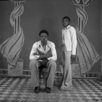 155. EAP054/1/81/412 Reference (shelfmark): EAP054/1/81/412 Title: Recreational photograph [c 1977] Scope & Content: 2 young men, one sitting and other standing. Format of original: 59mm x 59mm plastic negative Collection Area: Endangered Archives Programme Languages: Not applicable Date Range: c 1977 Extent: 1 TIFF image