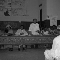 155. EAP054/1/153/169 Reference (shelfmark): EAP054/1/153/169 Title: Recreational photograph [c 1976] Scope & Content: At a meeting; people sitting behind a table, one standing addressing the meeting Format of original: 59mm x 59mm plastic negative Collection Area: Endangered Archives Programme Languages: Not applicable Date Range: c 1976 Extent: 1 TIFF image