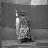 158. EAP054/1/153/192 Reference (shelfmark): EAP054/1/153/192 Title: Recreational photograph [c 1976] Scope & Content: Woman sitting and holding a horse tail fly whisk Format of original: 59mm x 59mm plastic negative Collection Area: Endangered Archives Programme Languages: Not applicable Date Range: c 1976 Extent: 1 TIFF image