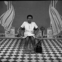 160. EAP054/1/153/197 Reference (shelfmark): EAP054/1/153/197 Title: Recreational photograph [c 1976] Scope & Content: Woman sitting in a black and white armchair Format of original: 59mm x 59mm plastic negative Collection Area: Endangered Archives Programme Languages: Not applicable Date Range: c 1976 Extent: 1 TIFF image