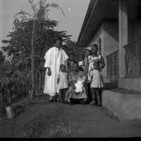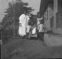 162. EAP054/1/153/205 Reference (shelfmark): EAP054/1/153/205 Title: Recreational photograph [c 1976] Scope & Content: Family group by house Format of original: 59mm x 59mm plastic negative Collection Area: Endangered Archives Programme Languages: Not applicable Date Range: c 1976 Extent: 1 TIFF image