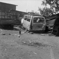 12. EAP054/1/29/341 Reference (shelfmark): EAP054/1/29/341 Title: Recreational photograph [c 1989] Scope & Content: Minibus parked in compound Format of original: 52mm x 59mm plastic negative Collection Area: Endangered Archives Programme Languages: Not applicable Date Range: c 1989 Extent: 1 TIFF image