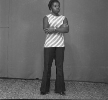 15. EAP054/1/91/90 Reference (shelfmark): EAP054/1/91/90 Title: Recreational photograph [c 1972] Scope & Content: Woman standing, arms crossed. Format of original: 55mm x 59mm plastic negative Collection Area: Endangered Archives Programme Languages: Not applicable Date Range: c 1972 Extent: 1 TIFF image