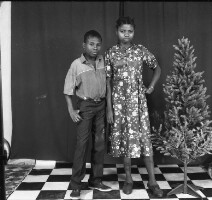 251. EAP054/1/103/273 Reference (shelfmark): EAP054/1/103/273 Title: Recreational photograph [c 1983-1984] Scope & Content: Boy and a girl standing by plastic tree Format of original: 56mm x 59mm plastic negative Collection Area: Endangered Archives Programme Languages: Not applicable Date Range: 1983-1984 Extent: 1 TIFF image
