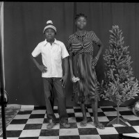 252. EAP054/1/103/279 Reference (shelfmark): EAP054/1/103/279 Title: Recreational photograph [c 1983-1984] Scope & Content: Boy and a girl standing by plastic tree Format of original: 59mm x 59mm plastic negative Collection Area: Endangered Archives Programme Languages: Not applicable Date Range: 1983-1984 Extent: 1 TIFF image
