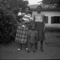253. EAP054/1/103/281 Reference (shelfmark): EAP054/1/103/281 Title: Recreational photograph [c 1983-1984] Scope & Content: Woman standing holding a baby by a girl and small boy Format of original: 59mm x 59mm plastic negative Collection Area: Endangered Archives Programme Languages: Not applicable Date Range: 1983-1984 Extent: 1 TIFF image