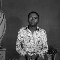 262. EAP054/1/155/318 Reference (shelfmark): EAP054/1/155/318 Title: Recreational photograph [c 1980] Scope & Content: Man on stage? with gourd and clay pipe? Format of original: 59mm x 59mm plastic negative Collection Area: Endangered Archives Programme Languages: Not applicable Date Range: c 1980 Extent: 1 TIFF image