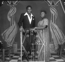 262. EAP054/1/156/81 Reference (shelfmark): EAP054/1/156/81 Title: Recreational photograph [c 1981] Scope & Content: 3 women all in "pagne" skirts and blouses, the one in the middle in white blouse. Format of original: 59mm x 59mm plastic negative Collection Area: Endangered Archives Programme Languages: Not applicable Date Range: c 1981 Extent: 1 TIFF image