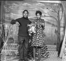 29. EAP054/1/81/254 Reference (shelfmark): EAP054/1/81/254 Title: Recreational photograph [c 1977] Scope & Content: Young couple standing holding tinsel bouquet by iron grillwork Format of original: 55mm x 59mm plastic negative Collection Area: Endangered Archives Programme Languages: Not applicable Date Range: c 1977 Extent: 1 TIFF image