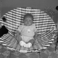 38. EAP054/1/99/13 Reference (shelfmark): EAP054/1/99/13 Title: Recreational photograph [c 1987] Scope & Content: Baby lying in a black and white armchair. Format of original: 59mm x 59mm plastic negative Collection Area: Endangered Archives Programme Languages: Not applicable Date Range: c 1987 Extent: 1 TIFF image