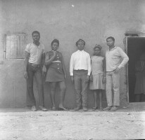 48. EAP054/1/81/451 Reference (shelfmark): EAP054/1/81/451 Title: Recreational photograph [c 1977] Scope & Content: Couple standing woman thinking pose, 3 others standing alongside Format of original: 57mm x 59mm plastic negative Collection Area: Endangered Archives Programme Languages: Not applicable Date Range: c 1977 Extent: 1 TIFF image