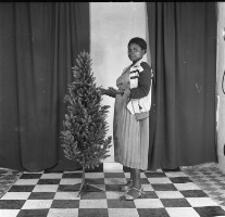 41. EAP054/1/103/268 Reference (shelfmark): EAP054/1/103/268 Title: Recreational photograph [c 1983-1984] Scope & Content: Woman standing touching plastic tree Format of original: 57mm x 59mm plastic negative Collection Area: Endangered Archives Programme Languages: Not applicable Date Range: 1983-1984 Extent: 1 TIFF image