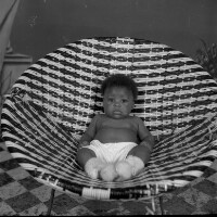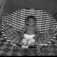 43. EAP054/1/130/43 Reference (shelfmark): EAP054/1/130/43 Title: Recreational photograph [c 1979-1980] Scope & Content: Baby in a black and white armchair Format of original: 59mm x 59mm plastic negative Collection Area: Endangered Archives Programme Languages: Not applicable Date Range: 1979-1980 Extent: 1 TIFF image