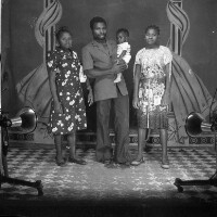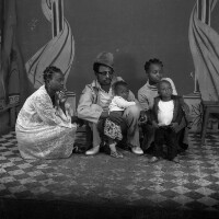 46. EAP054/1/130/61 Reference (shelfmark): EAP054/1/130/61 Title: Recreational photograph [c 1979-1980] Scope & Content: Crouching, a man between 2 women with 2 children Format of original: 59mm x 59mm plastic negative Collection Area: Endangered Archives Programme Languages: Not applicable Date Range: 1979-1980 Extent: 1 TIFF image