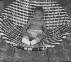 42. EAP054/1/130/42 Reference (shelfmark): EAP054/1/130/42 Title: Recreational photograph [c 1979-1980] Scope & Content: Baby in a black and white armchair Format of original: 59mm x 59mm plastic negative Collection Area: Endangered Archives Programme Languages: Not applicable Date Range: 1979-1980 Extent: 1 TIFF image
