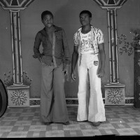 50. EAP054/1/130/80 Reference (shelfmark): EAP054/1/130/80 Title: Recreational photograph [c 1979-1980] Scope & Content: 2 young men standing Format of original: 59mm x 59mm plastic negative Collection Area: Endangered Archives Programme Languages: Not applicable Date Range: 1979-1980 Extent: 1 TIFF image