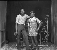 73. EAP054/1/146/49 Reference (shelfmark): EAP054/1/146/49 Title: Recreational photograph [c 1970-c 1995] Scope & Content: Man standing holding the handbag of his mother who is sitting on stepped bench, his right hand on her shoulder, radio on her right. Format of original: 59mm x 59mm plastic negative Collection Area: Endangered Archives Programme Languages: Not applicable Date Range: c 1970-c 1995 Extent: 1 TIFF image