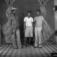 88. EAP054/1/81/136 Reference (shelfmark): EAP054/1/81/136 Title: Recreational photograph [c 1977] Scope & Content: Girl standing between 2 young men. Format of original: 59mm x 59mm plastic negative Collection Area: Endangered Archives Programme Languages: Not applicable Date Range: c 1977 Extent: 1 TIFF image