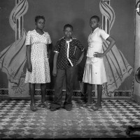 85. EAP054/1/81/131 Reference (shelfmark): EAP054/1/81/131 Title: Recreational photograph [c 1977] Scope & Content: Young man standing between 2 young women. Format of original: 59mm x 59mm plastic negative Collection Area: Endangered Archives Programme Languages: Not applicable Date Range: c 1977 Extent: 1 TIFF image