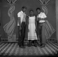 84. EAP054/1/81/130 Reference (shelfmark): EAP054/1/81/130 Title: Recreational photograph [c 1977] Scope & Content: Young woman standing between 2 young men. Format of original: 59mm x 59mm plastic negative Collection Area: Endangered Archives Programme Languages: Not applicable Date Range: c 1977 Extent: 1 TIFF image
